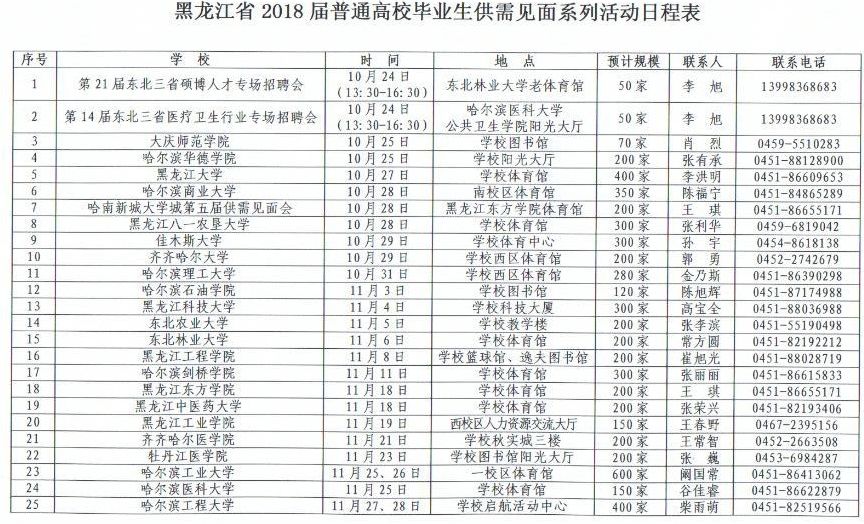 黑龙江省2018届普通高校毕业生供需见面系列活动日程安排表