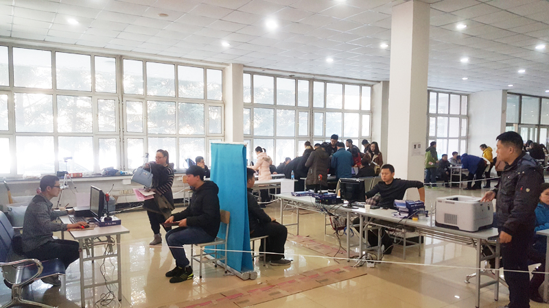 我校报考点现场报名确认考生主要集中在11月8日— 9日,首日现场报名确认高峰达到1500人。为减少考生等候时间,避免拥堵,我校现场报名确认工作人员早上7点就开始工作,下午13点开始工作,采取缩短休息时间、增加工作时间的办法,保证了现场报名确认工作有序进行。